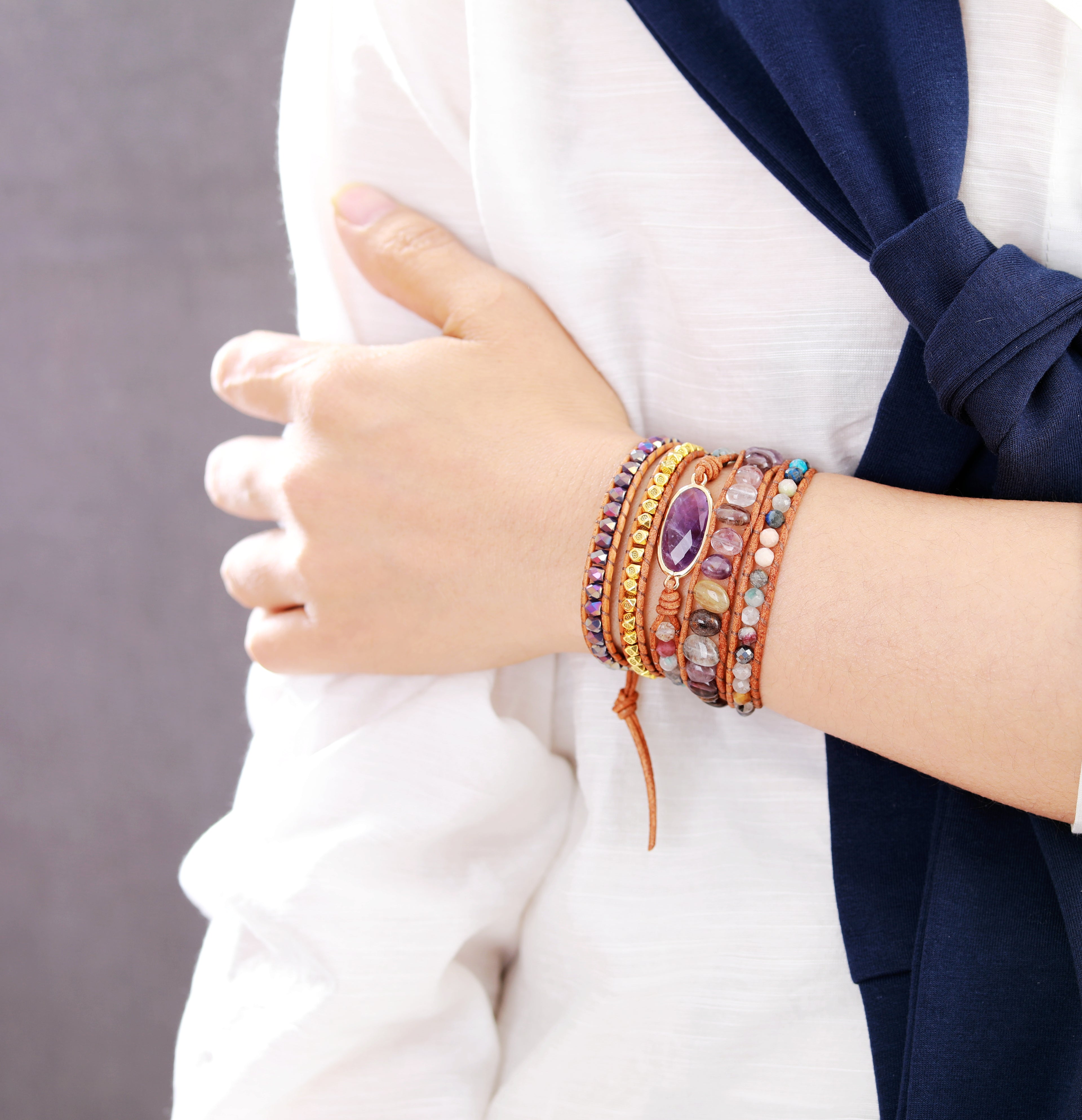 5 wraps leather bracelet