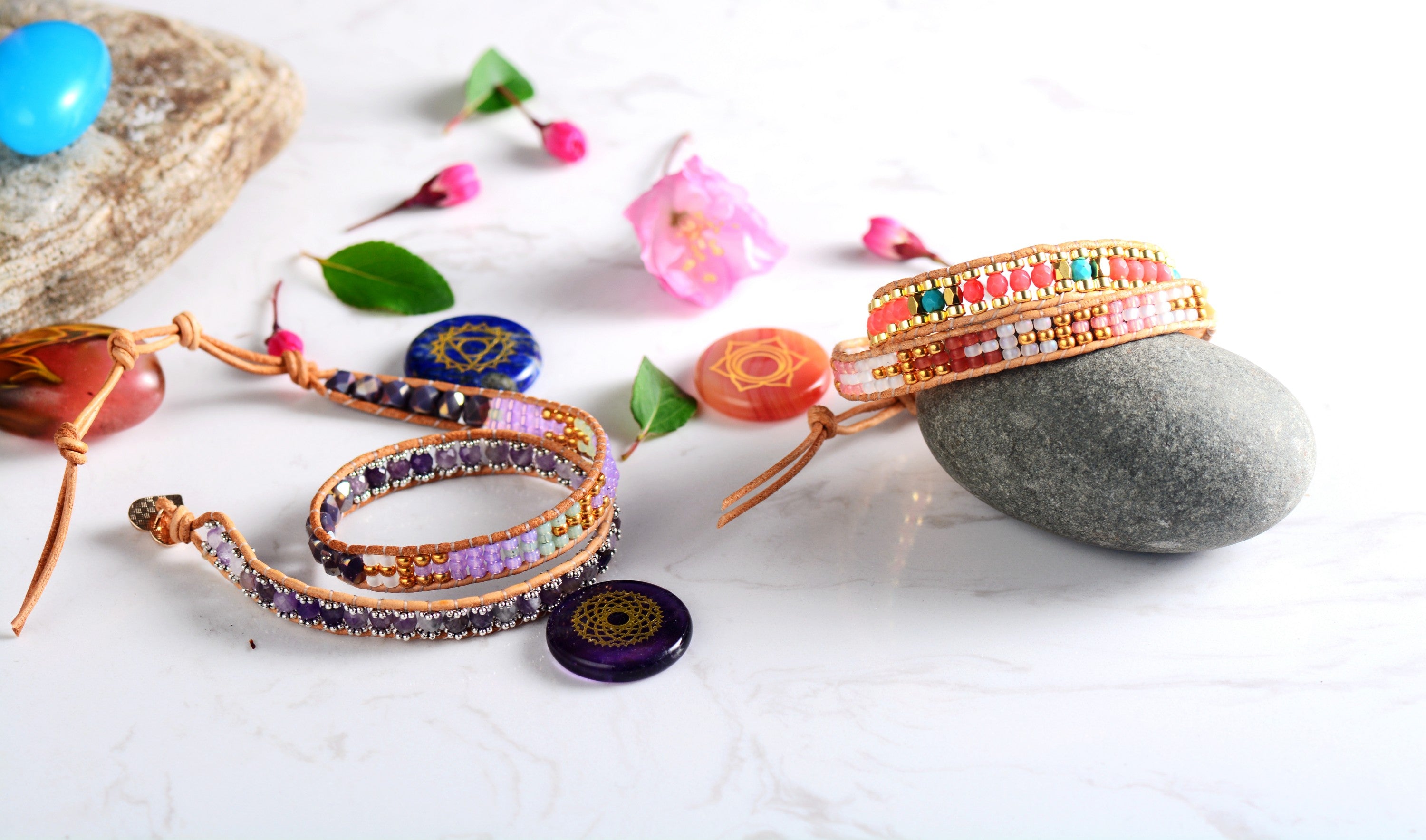 I love these wrist wraps so much that I bought two more! I wanted a back up for me and one to gift. The colors of the stones are of beautiful matted tones. The wraps are well made and the placement of the stones, well thought out.