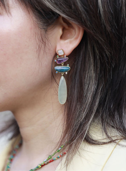 Inspired by diverse themes borrowed from mother nature and personal inner interest, from the world's oceans to the passing of time, patina and textures, bits of stardust fallen on earth, my one of a kind boho-chic jewelry line featuring various natural&semiprecious stones as well as cultured pearls which strung on exquisite handworked resistant leather, well-made brass base material. My belief in making things by hand is the foundation of my approach and a reflection of my passion for artisan-made goods.