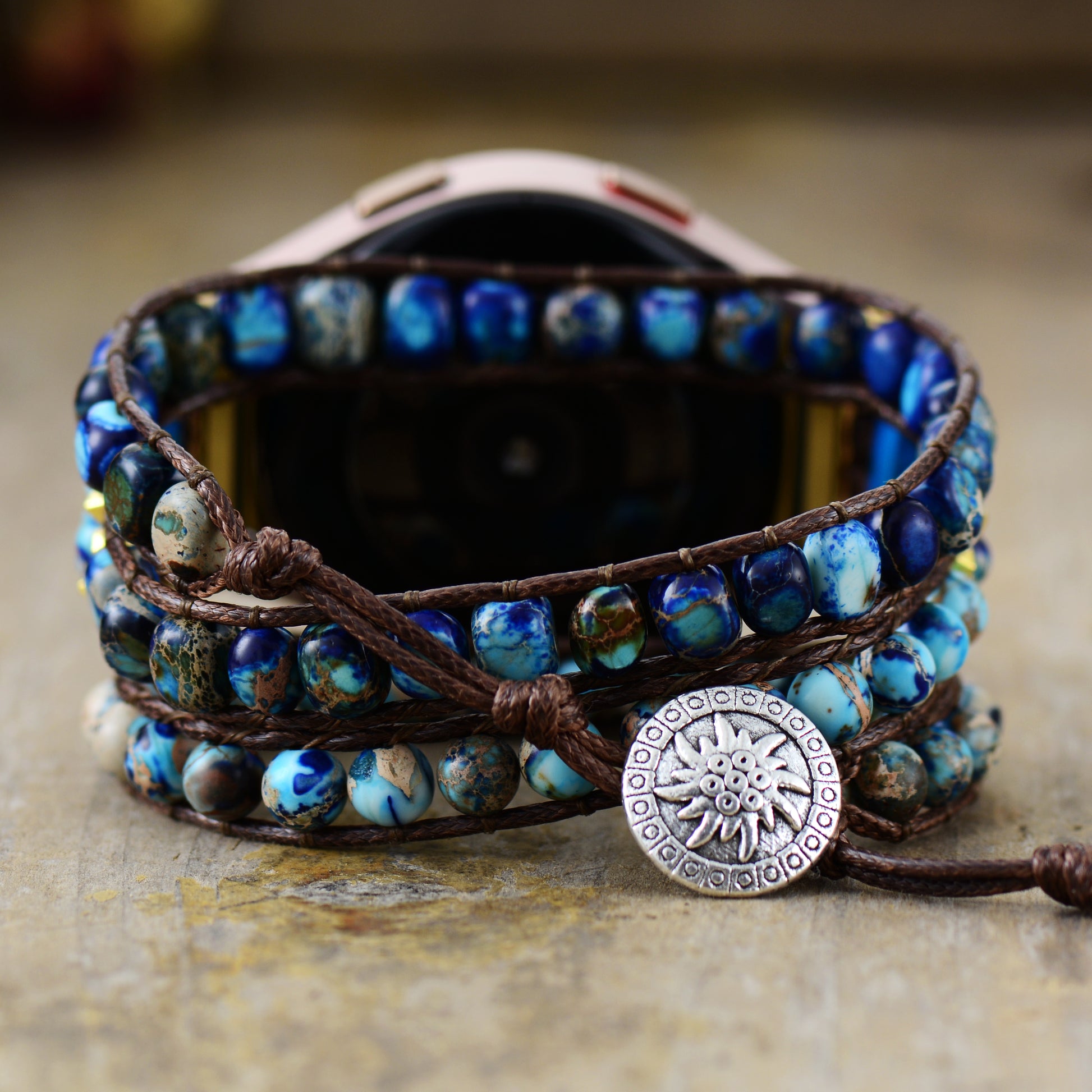 I love these wrist wraps so much that I bought two more! I wanted a back up for me and one to gift. The colors of the stones are of beautiful matted tones. The wraps are well made and the placement of the stones, well thought out.